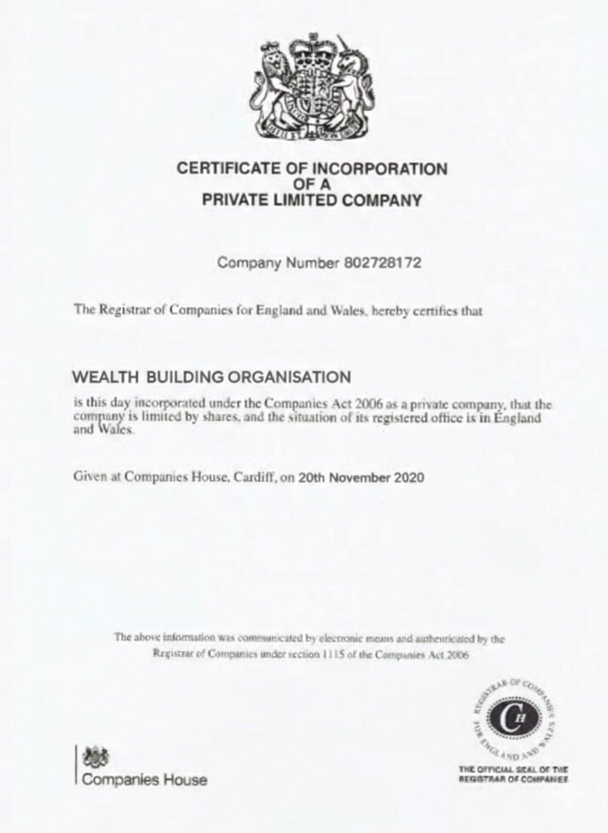 Our company conducts absolutely legal activities in the legal field. We are certified to operate finance business, we are legal and safe. We are certified by the United Kingdom company house with a registeration number 10425194. Click the button below to see our certificate.